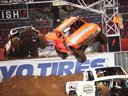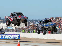 Автомобильные гонки если для кого-то и существуют, то в первую очередь для зрителей и болельщиков. Но что делать, если вы устали от космических супертехнологий "Формулы-1", магия кольцевых гонок вас больше не привлекает, а ралли - это слишком далеко и неудобно? Обязательно отвлекитесь от этих педантичных серий и хоть разок взгляните на американские гонки Stadium Super Trucks (полное название чемпионата - Speed Energy Formula Off-Road). Это совершенно безумная серия, в которой мощные пикапы гоняют по стадионам и на специально подготовленных трассах. Где сам процесс всегда важнее результата. Заезды на перекачанных стероидами внедорожниках - это зрелищная толкучка, заносы и прыжки!