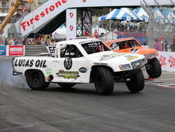 Представьте себе, весь этот "праздник" прыжков и кренов поступил на вооружение экстремальных игр Х-Games, которые минувшим летом проходили на американской гоночной трассе Circuit of the Americas в Техасе, где ежегодного проводятся заезды "Формулы-1". Серия Stadium Super Trucks стала столь активно набирать популярность, что парочку заряженных пикапов даже попросили организаторы традиционной Гонки Чемпионов, проходившей в начале декабря на Барбадосе.
