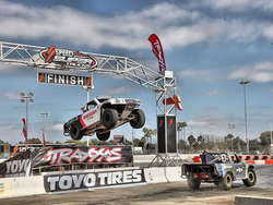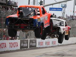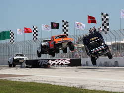 Если бы в автогонках присуждали свой Оскар в номинации "форменное безумие", то статуэтку если и не взяла, то уж точно бы на нее претендовала американская серия Stadium Super Trucks. На треке созданные по мотивам радиоуправляемых моделей заряженные пикапы только и делают, что кренятся и прыгают.