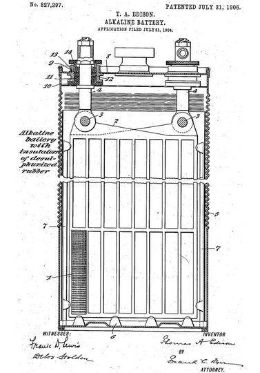Экспериментируя с железно-никелевым аккумулятором, Эдисон применил щелочной раствор, позволивший получить более "долгоиграющую" батарею. Этот продукт впоследствии стал одним из самых продаваемых.