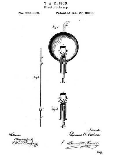 Лампа накаливания Эдисона с угольной нитью представляла собой первый коммерчески выгодный источник электрического освещения. Предыдущие версии были не настолько мощными и для их изготовления использовали слишком дорогостоящие материалы, такие как платина.