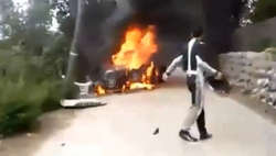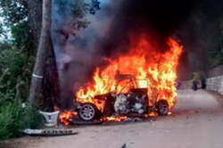 Очевидцы утверждают, что пламя мгновенно охватило машину. Экстренные службы были бессильны. Водитель Карлос Искар, который также находился в машине, выжил. Его доставили в местную больницу, врачи оценивают его состояние как стабильно тяжелое.