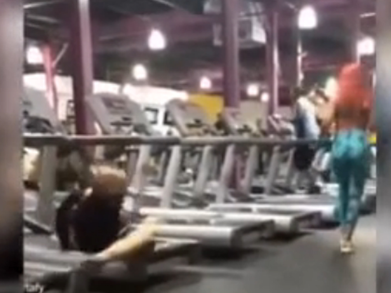 Конфуз в спортзале: парень упал с беговой дорожки - ВИДЕО