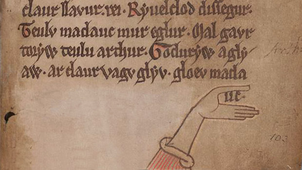 Черная книга Кармартена, хранящаяся в Национальной библиотеке Уэльса в Аберистуите, считается первой книгой, написанной целиком на валлийском языке. Ее составил и переписал от руки один и тот же человек, работавший в скриптории монастыря св. Иоанна Евангелиста в Кармартене в середине XIII века. Название "Черная" она получила по прозаической причине: таков цвет ее переплета. Литературоведы дорожат этой рукописью не только из-за ее почтенного возраста, но и из-за текстов, связанных с историей короля Артура и волшебника Мерлина. Так, в Черную книгу входят поэма "Разговор с привратником", в котором король рассказывает о воинских подвигах со стражем ворот неназванной крепости, "Беседа Мерлина с Талиесином" (диалог колдуна с легендарным валлийским поэтом) и стихотворение "Могилы воинов", в котором упоминается погребение короля Артура.