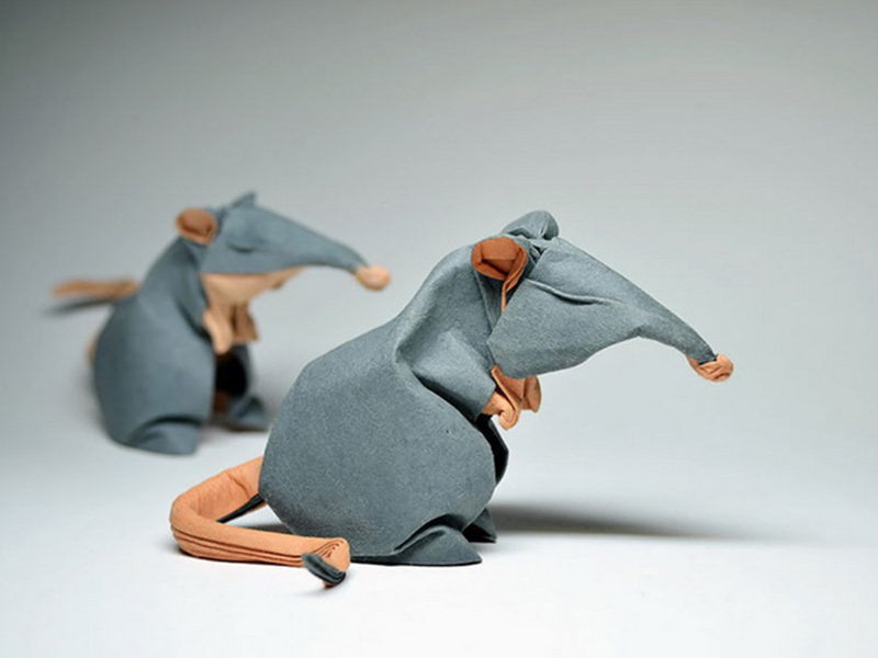 Вообще оригами - геометричное искусство, но вьетнамский художник Хоанг Тьен Кует с использованием сложной техники "влажного складывания" делает волнистые бумажные фигуры. Это придает его работам скульптурность, что делает его оригами-зверей поистине примечательными. Секрет мастера: воды надо мало, а бумага должна высыхать до того, как складывание завершено.