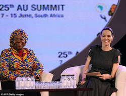 Вчера известная голливудская актриса Анджелина Джоли приняла участие в саммите Африканского союза. Кинозвезда, которая является послом доброй воли ООН по делам беженцев, выступила на мероприятии с призывом бороться с насилием над женщинами.
