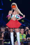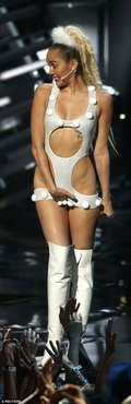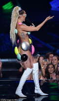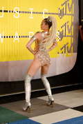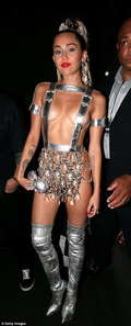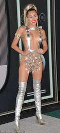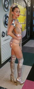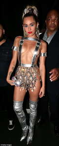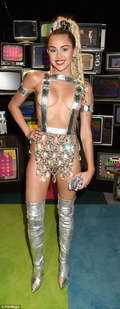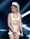 Майли, которая ко всему прочему была и ведущей шоу, предстала перед фотографами в "наряде" Versace, который абсолютно точно не назовешь платьем. Потому как оно лишь прикрывало самые пикантные места, не оставляя места фантазии. Впрочем, помимо наряда на красной дорожке, и другие "платья" Сайрус на сцене были не менее откровенными.