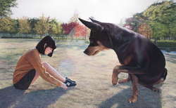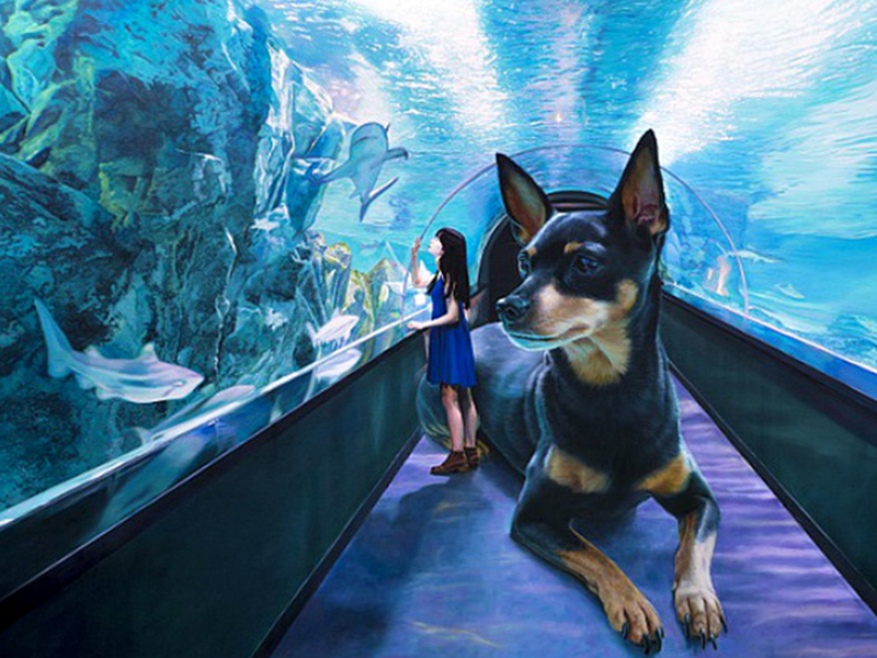 Южнокорейский художник Чон Ву-Джае рисует маслом картины с участием немыслимых размеров собаки и девочки-подростка, демонстрируя таким образом сложности подросткового возраста и утешение, которое может принести домашний питомец.