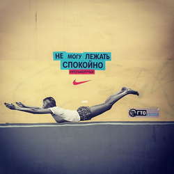Спортивные селфи девушек, опубликованные в Instagram, превращались в городской стрит-арт. На стенах домов по всей Москве неожиданно появлялись гигантские граффити-постеры с мотивирующими надписями, которые были изготовлены на основе фотографий из аккаунтов в Instagram.