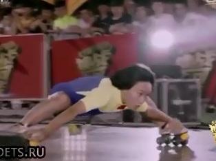 Она, будучи на роликах, села на шпагат и в таком положении проехала под десятками машин, при это не задев ни один.