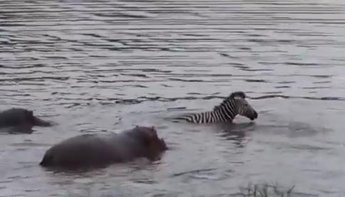Как передает Day.Az, за зебру неожиданно заступились бегемоты и отогнали крокодила.