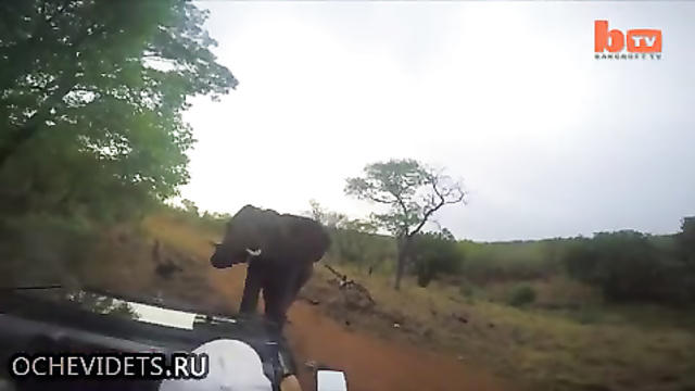Разъяренная слониха атаковала джип - ВИДЕО