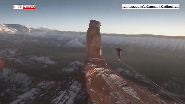 Место действия - пустыня в американском штате Юта. Высота скал - более ста метров. Длина веревки составила 497 метров. Это всего на 16 метров больше, чем предыдущий мировой рекорд.