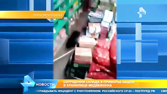 Сотрудники продуктовой базы в Приморье сошлись лицом к лицу с диким медвежонком.