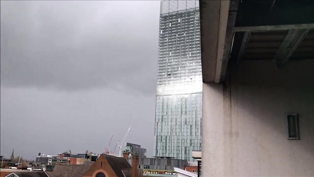 Пользователи соцсетей делятся видеозаписью на которой многоэтажный дом в Манчестере издаёт ужасающие звуки, передает Day.Az со ссылкой на RT.