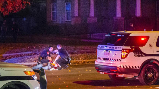 Блюстители порядка оказались примерно в двух кварталах от кампуса университета после того, как местные жители пожаловались на неизвестного, который выбивает стёкла в их автомобилях.