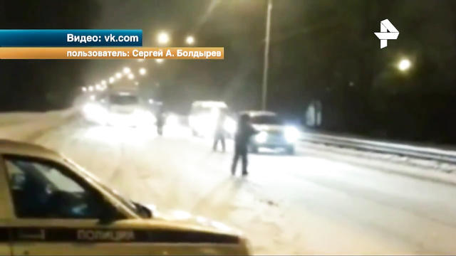 На выезде полицейские организовали ловушку - заблокировали проезд большегрузами.