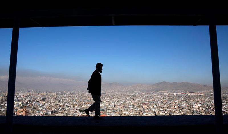 На фото: человек на вершине холма с видом на растущий с каждым днем Кабул, 31 января 2016 года.