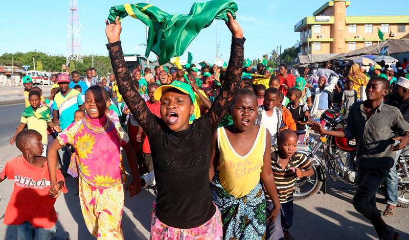 На фото: сторонники президента Джона Помби Магуфул празднуют победу своего кандидата.
