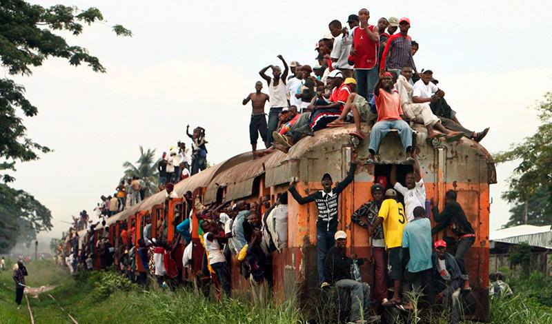 На фото: конговцы полностью загрузили собой поезд, путешествующий по Киншасе, 7 ноября 2006 года.