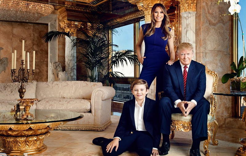 В этой квартирке Трамп живёт вместе с супругой Меланьей и сыном Бэрроном. Интерьер пентхауса, расположенного на трёх верхних этажах Трамп-тауэр в Нью-Йорке, в 1983 году разработал дизайнер Анджело Донгия.
