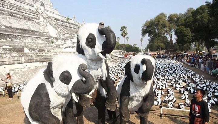 Представители слоновьего заповедника на юге Таиланда загримировали трех своих гигантских подопечных под панд. Этот неожиданный поступок был приурочен к временной выставке "1600 панд", которая проходила на территории заказника. Фото черно-белых слонов вызвали неоднозначную реакцию у зрителей, сообщает Daily Mail.