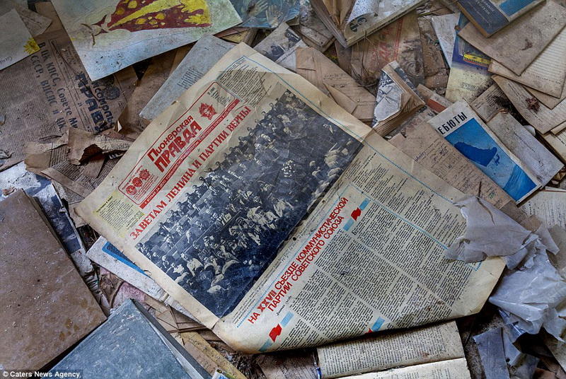 Книги и газеты в беспорядке разбросаны по полу как немое напоминание о том, что когда-то Припять была процветающим городом.