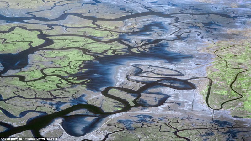 Фотография реки Панма в Бангладеш, сделанная с высоты 12 тысяч метров, больше похожа на произведение искусства, нежели на снимок.