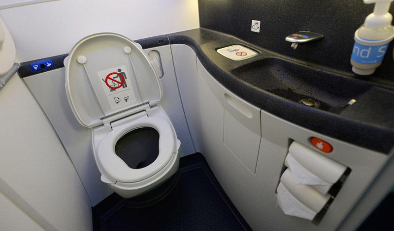 Любое общественное место отличается повышенным содержанием опасных бактерий. Туалет самолета - как его ни очищай - всегда будет иметь возможность одарить вас кишечной инфекцией. Особенно грязны кнопки для слива воды, постарайтесь не касаться их руками.