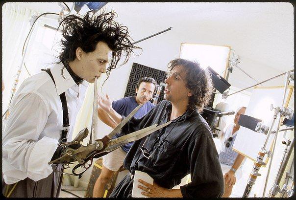 Джонни Депп и Тим Бёртон на съёмках фильма "Эдвард Руки-ножницы", 1990 год.