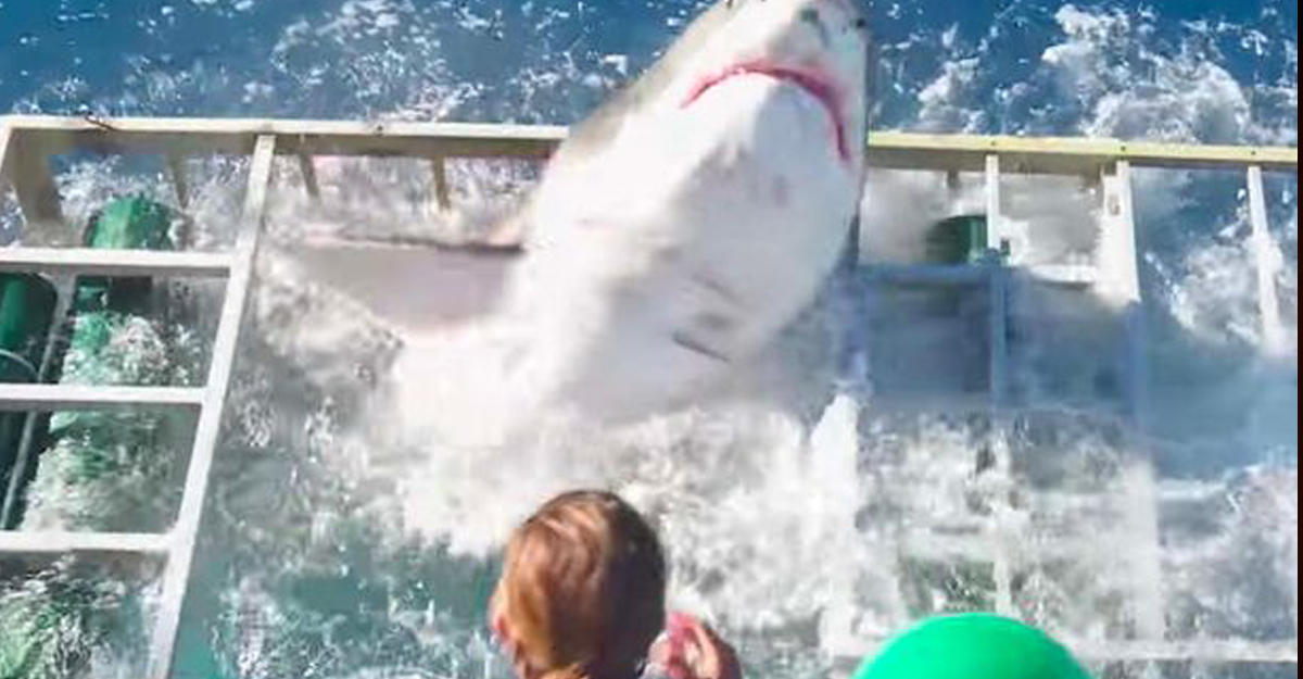 Белая акула проникла в клетку с водолазом - ВИДЕО