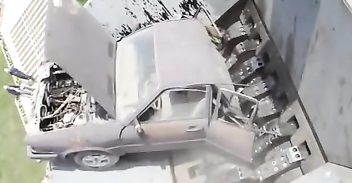 Индустриальный шредер для металла перемалывает машину - ВИДЕО