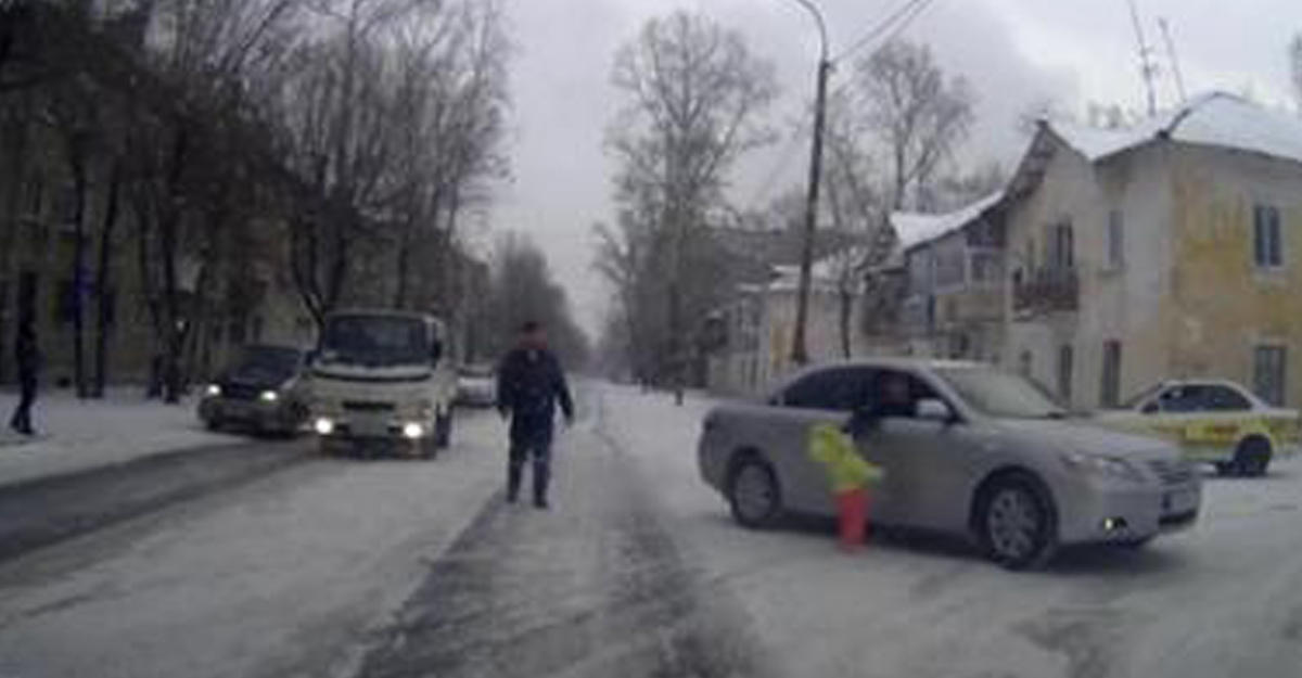 Мужчина, не выходя из машины, спас малыша, вышедшего на дорогу - ВИДЕО