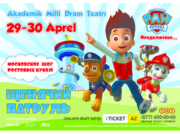 Московское шоу ростовых кукол представит 29 и 30 апреля на сцене Азербайджанского государственного академического национального драматического театра новый спектакль "Щенячий патруль. Продолжение...", сообщает Day.Az со ссылкой на Trend.