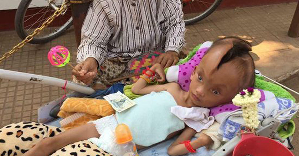 Феактра Пов из провинции Сиемреа, Камбоджа, родился с трещиной в черепе. На протяжении шести лет расселина увеличивалась в размере, и теперь бабушка мальчика с ужасом говорит, что может полностью засунуть туда ладонь, передает Day.Az со ссылкой на dezinfo.net.