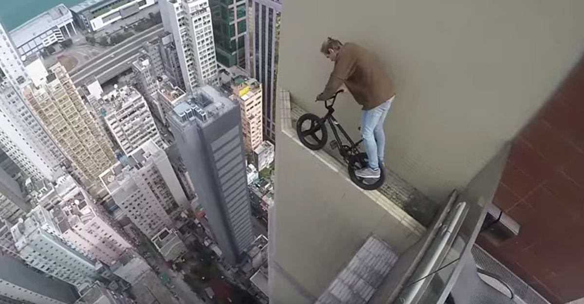 Родом этот рисковый парень, не устающий шокировать фанатов своими головокружительными трюками на волоске от смерти, из Екатеринбурга. На днях в Сети он опубликовал видео, где зафиксирован его сумасшедший заезд на специальном "экстремальном" велике по кромке высотного здания в Гонконге.