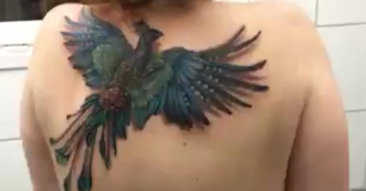 Тату-мастер создал потрясающую татуировку с "летающим" фениксом - ВИДЕО