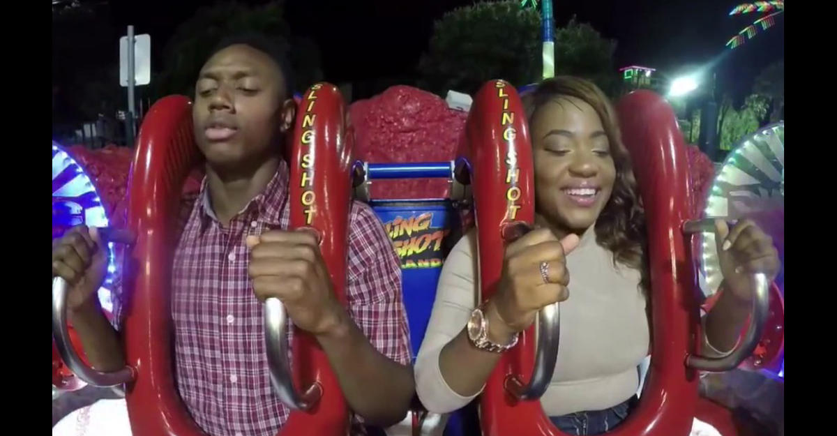В тот момент, когда их оттянули к точке запуска, работник заявляет уже сильно нервничающему парню, что ремень безопасности на его кресле завязан слишком слабо и его нужно затянуть потуже. Потом он говорит, что вообще-то ремни не затянуты на обоих креслах, и обращается к коллеге, утверждая, что оба ремня толком не привязаны. Девушка и парень судорожно пытаются затянуть ремни, и в этот момент их запускают в небо. Нетрудно представить, как страшно им было в первые секунды, когда они думали, что сотрудники аттракциона не обеспечили им полную безопасность.