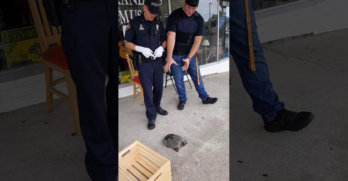 Коп решил спасти черепаху и отнести обратно к озеру, но что-то пошло не так - ВИДЕО