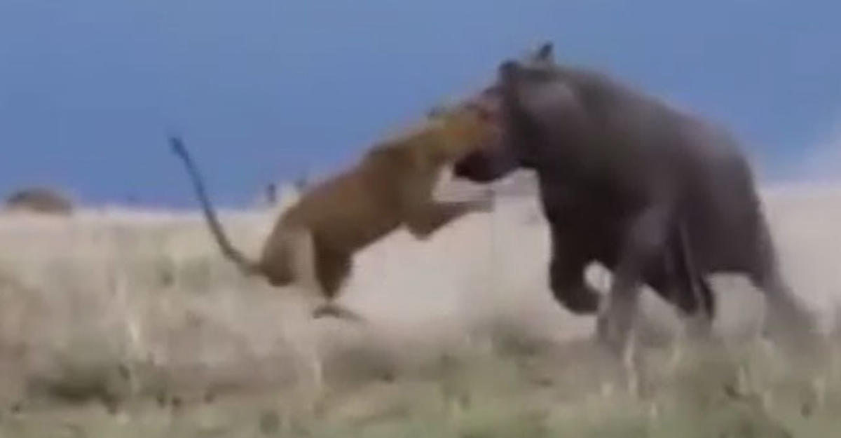 Львица напала на спящего бегемота и пожалела об этом - ВИДЕО