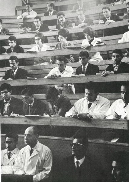 4. Студенты университета в 1970 году. Хотя религиоведение и было популярным предметом, лекции по математике, астрономии, медицине и литературе также посещались большим количеством учащихся. На сегодняшний день в университете Тегерана обучается около 35 000 студентов дневной и заочной форм обучения. Courtesy of Kaveh Farrokh