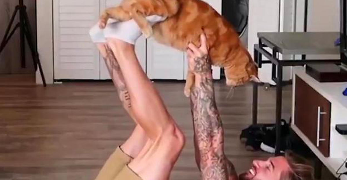 В Сети обратили внимание на американского спорт-блогера и модель Тревиса Делориера (Travis DesLaurier), который качает мышцы с помощью рыжего кота по кличке Джейкоб. Ролик был опубликован в Twitter-аккаунте INSIDER.
