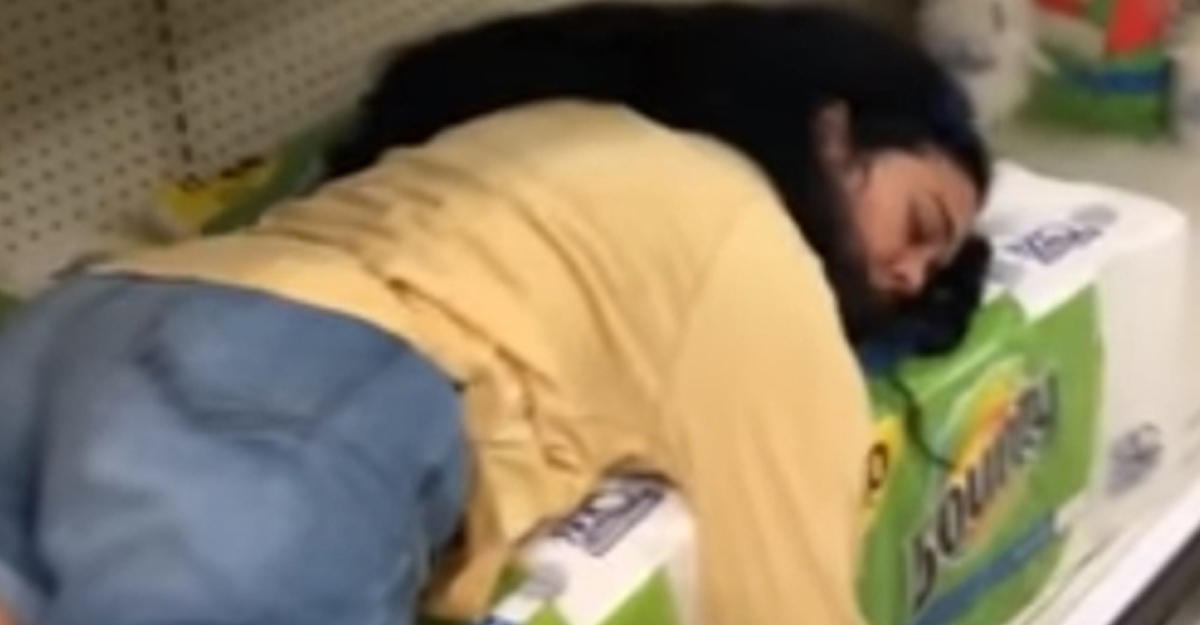 Некая женщина по имени Изабель, ставшая героиней короткого видеоролика, слишком утомилась во время шопинга и решила вздремнуть прямо в магазине, выбрав для этой цели полку с мягкими бумажными полотенцами.