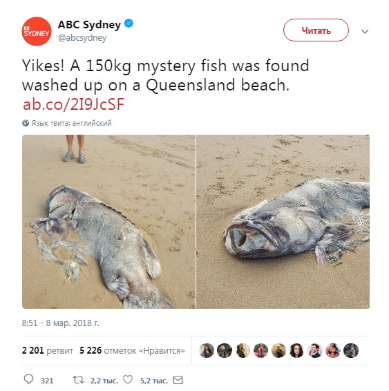 Специалисты музея Квинсленда сообщили, что вероятнее всего рыба является квинслендским гигантским групером.