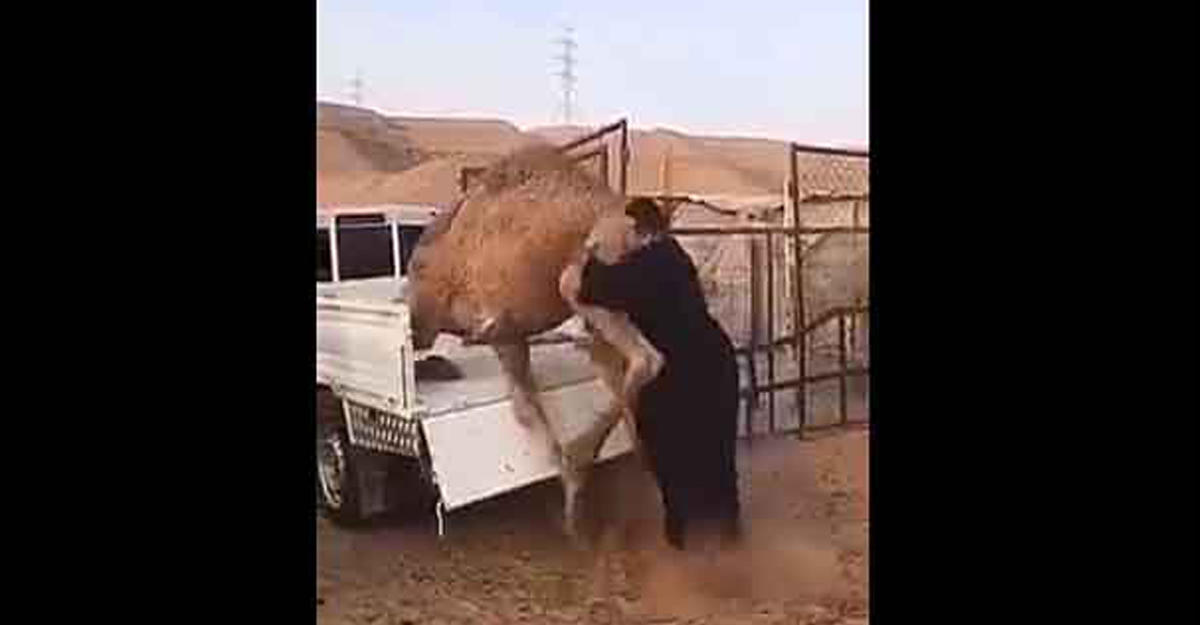 Араб голыми руками забрасывает верблюда в пикап - ВИДЕО