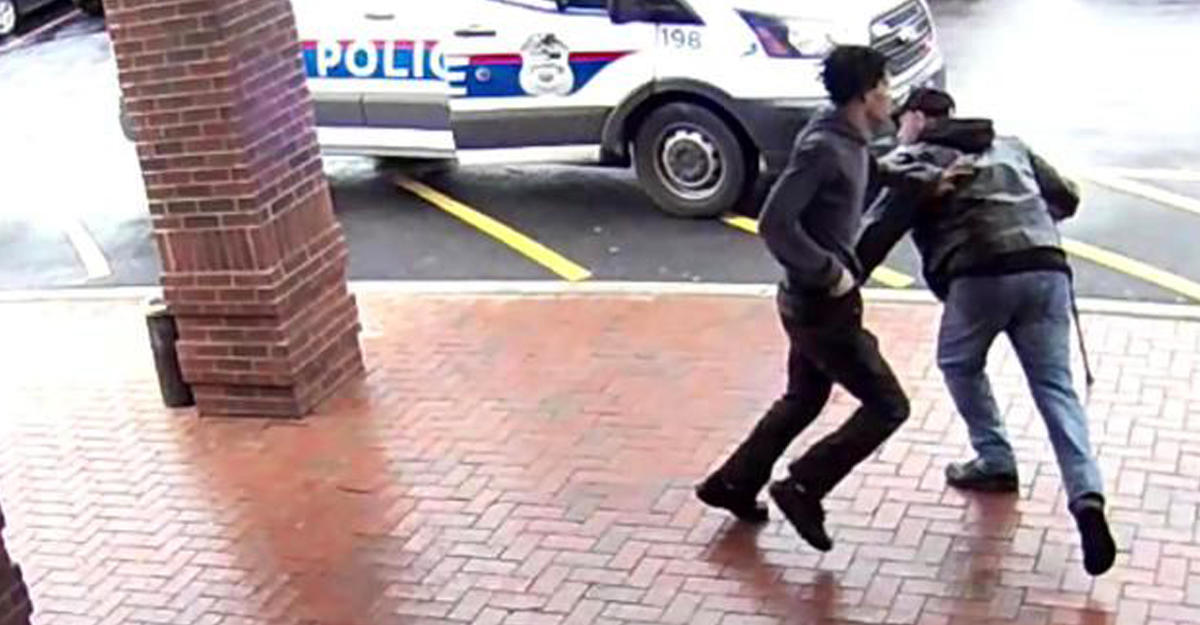 Пожилой мужчина с тросточкой ждал свою внучку возле библиотеки, когда услышал полицейские сирены. Вслед за этим он увидел чернокожего преступника и преследующих его копов. Когда грабитель поравнялся с пенсионером, тот незаметно выставил ногу. Беглец не удержал равновесие и покатился по дорожке. Возможно, это спасло ему жизнь, - полицейские уже готовы были открыть огонь на поражение, передает Day.Az со ссылкой на 5-tv.ru.