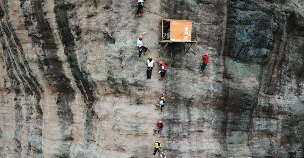 В Национальном геологическом парке Шинуцзай в Китае администрация установила специальный магазин, который продает закуски и напитки скалолазам, передает RT.