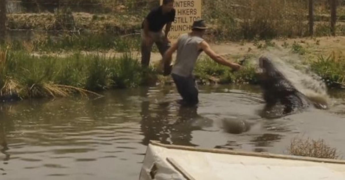 Молодые люди в начале своего образовательного видеоролика демонстрировали полное бесстрашие. Джей Янг, владелец спасательного центра, держа приманку, заигрывал с крокодилом, который решил проучить наглеца и чуть не лишил молодого человека руки. В самый последний момент Джей успел отдёрнуть свою конечность и избежать травмы.