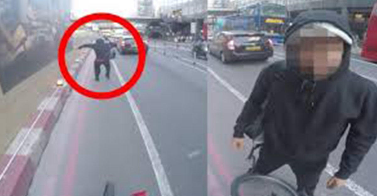 Лондонский велосипедист устал от того, что пешеходы используют велодорожки и блокируют проезд, и решил отомстить необычным образом. Об этом рассказало издание Daily Mail.