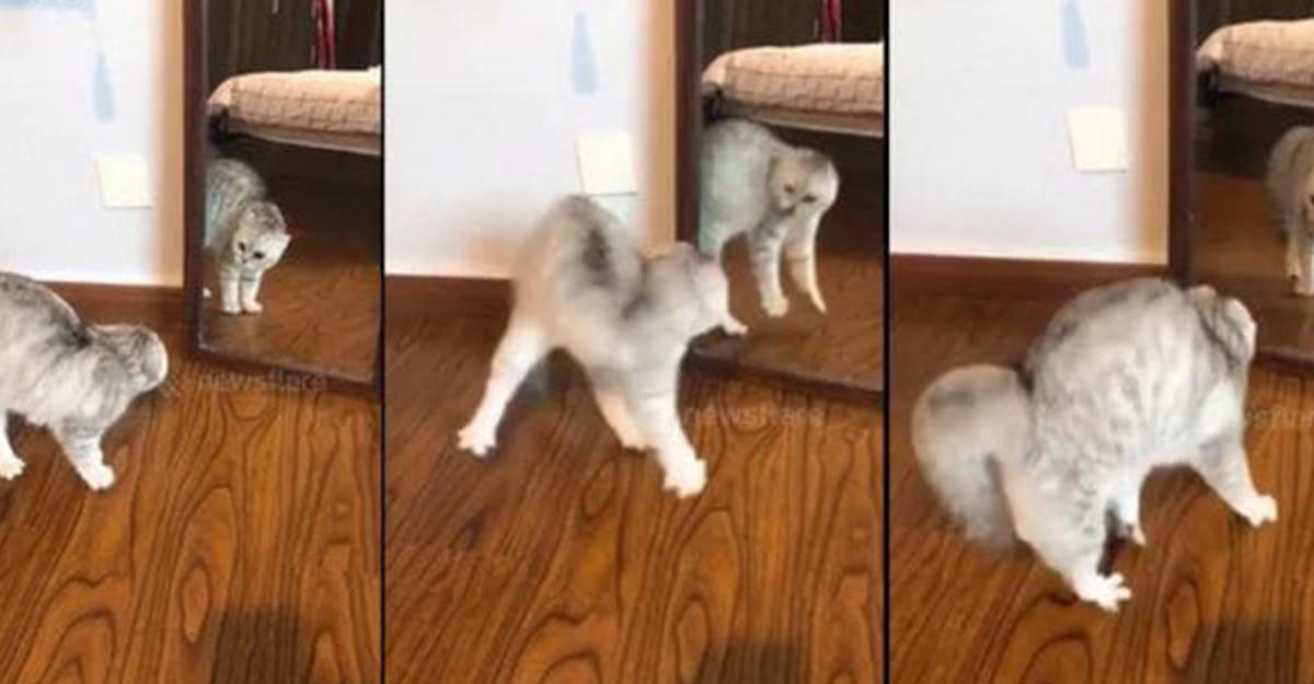 Кошка, отстоявшая свою территорию у зеркала, стала интернет знаменитостью - ВИДЕО